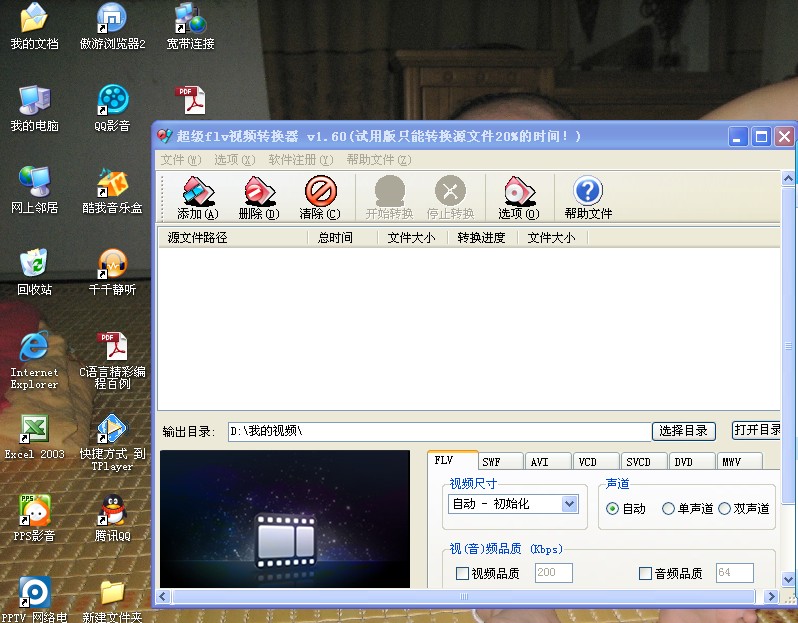 软件介绍: 《超级FLV视频转换器》是一款功能强大的FLV视频转换工具,它可以帮助您将几乎所有流行的视频格式,如:RM、RMVB、VOB、DAT、VCD、 DVD、VCD、ASF、MOV、QT、MPEG、WMV、 MP4、3GP、DivX、XviD、AVI、FLV、MKV等视频文件转换为FLV/SWF网络视频格式。也可以把FLV视频文件转换成AVI、 VCD、SVCD、DVD等视频格式。