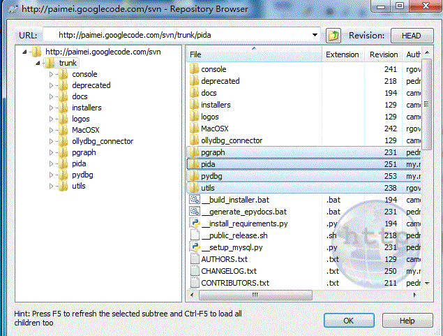 得到这样的地址http://paimei.googlecode.com/svn/trunk/