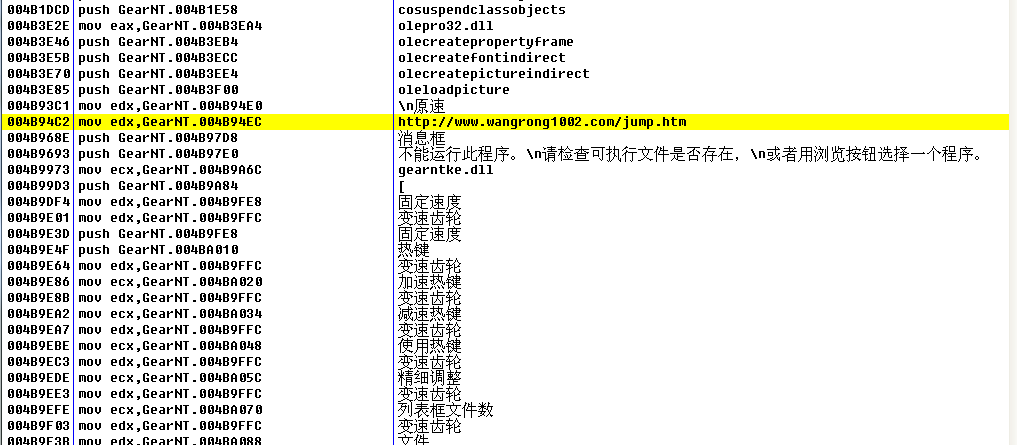 方法:用OD打开后直接查找unicode,然后输入www查找,可以找到如下位置: