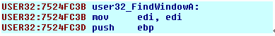 Appcall(LocByName("user32_FindWindowA"), p, 0, "Untitled - Notepad");