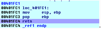 在执行到函数返回之后我们很可能会看到如下的代码: