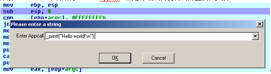 就像你看到的那样我们直接引用Appcall函数_prinft就像它是内置的IDC函数一样。