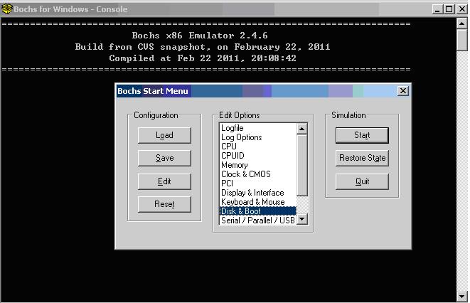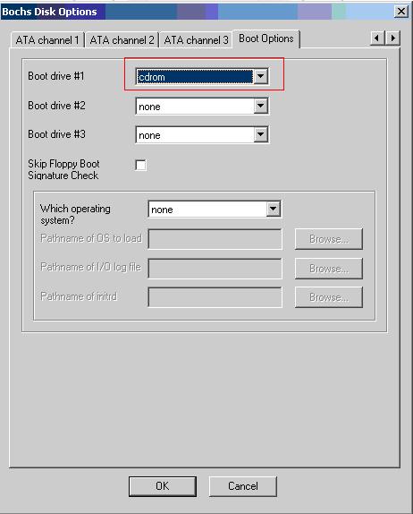 1.双击bochs.exe设置虚拟机引导和磁盘
