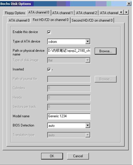 bochs我这里说下,大家可以去下载最新的版本的bochs,我没有制作bochs虚拟磁盘,比较麻烦,想到一个最简单的方法,直接使用xp2 winpe的ISO镜像,最新版的bochs不需要自己编写脚本,用bochs.exe可以直接生成配置文件