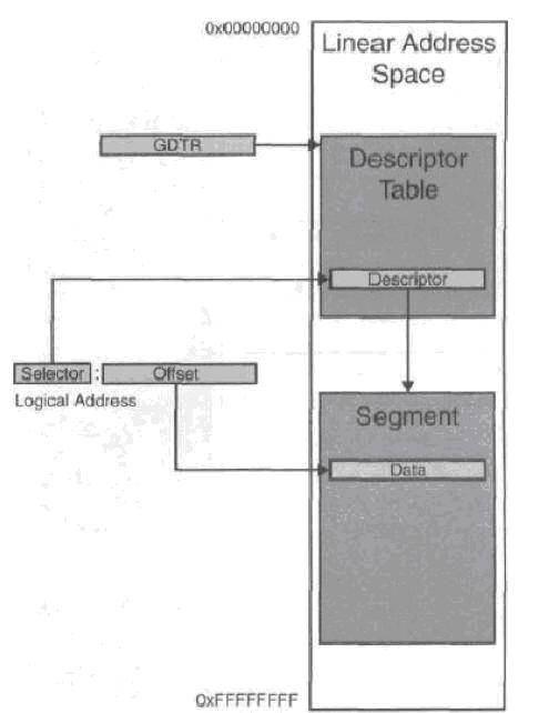 这里我先不解释描述符(Descriptor),我们可以暂时理解为描述内存信息(段基地,段界限,段属性等)的数据结构.