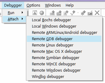 进入之后点击菜单的Debugger->Attach->Remote GdbDebuger,如图9所示