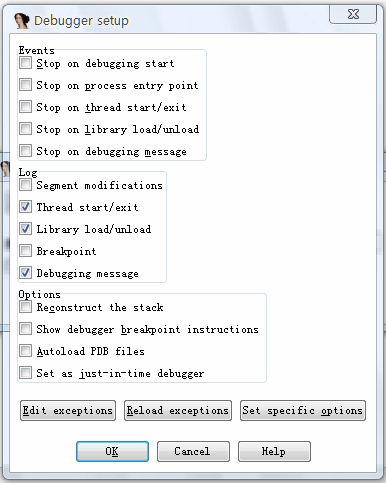 执行Edit exceptions打开异常处理选项窗口,如图12所示。
