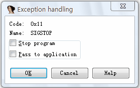 编辑11号异常,去掉stop program的勾,如图13,否则在调试的过程中会非常的痛苦。