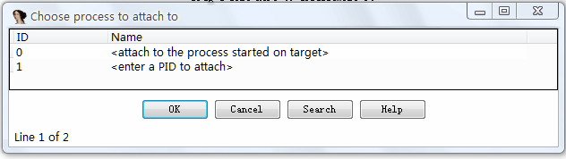 关闭所有的设置窗口,现在就可以进行附加了,点击ok之后将会弹出如图14所示的进程列表。