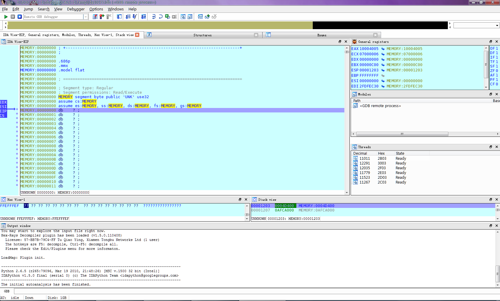由于上面的两个问题导致现在ida虽然可以附加到进程或者启动独立的进程进行调试,但是实际的效果并不理想。明显是一锤子买卖,一旦暂停就完全死翘翘了,这也就是在文章开始处提到的那个问题。所以对于上面的两个问题哪位大大有好的解决办法还望不吝赐教。