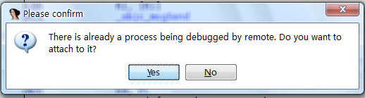 在application和input file中输入设备上的文件的绝对路径,其余的设置与attach的方式是完全一致的。设置完成之后就可以启动调试器了,此时会提示已经有远程进程在被调试,是否附加到,如图18.