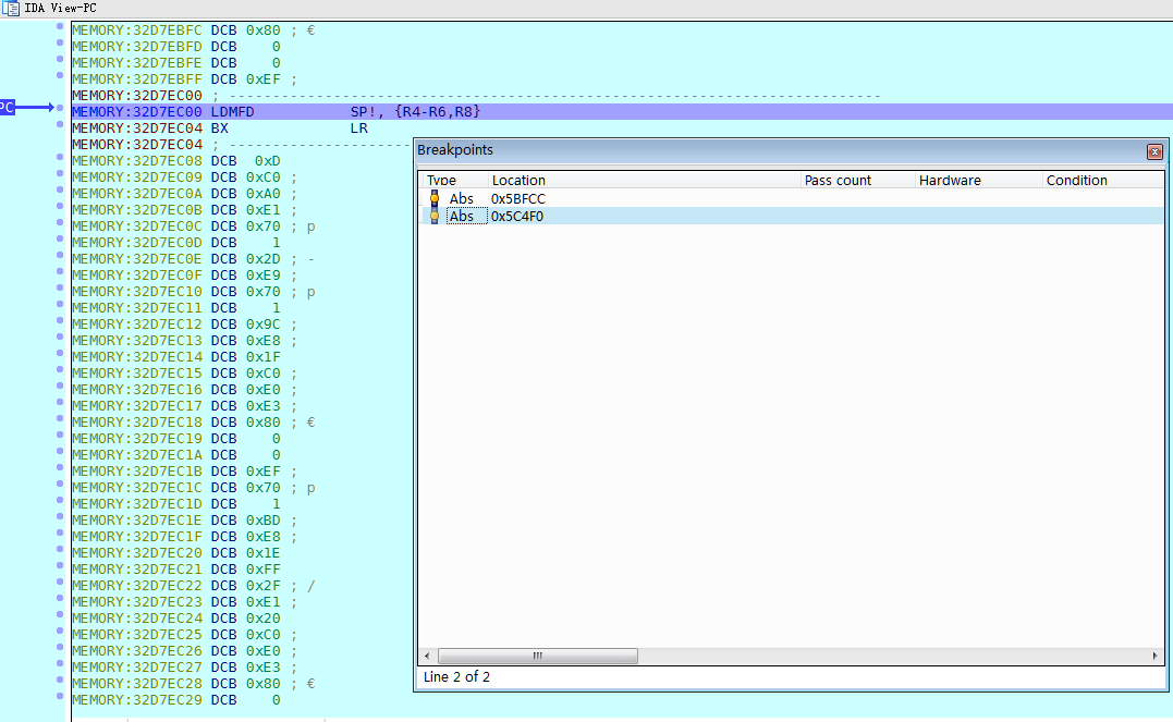 1. 在静态分析的时候设置的断点会变为无效,如图20所示;