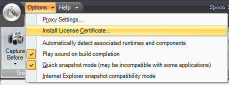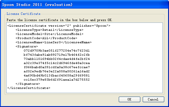 附加成功后,选择Spoon Studio中菜单中的Install License Certificate
