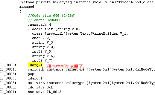 按F10单步,一路下来,并随时注意观察IL代码,灵活运行F11和F12单步调试能力,很快就可以定位到下图的类中。(具体怎么找到,就要看各位平时的调试能力了,多练习就会很快定位)