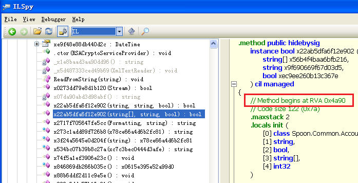 我们再将ILSPY的反编译的语言设置为IL,那么就可以看到这个方法的RVA位置。