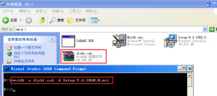 msidb -a disk1.cab -d Setup-9.4.1860.0.msi
