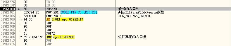 我发现暴风播放控件mps.dll每次都加载到0x1950000处,可以在它的入口函数处添加"同死"代码。可是它的ImageBase为0x10000000,于是可以用Rebaser.exe把ImageBase修改成0x1950000,修改mps.dll的重定位表,这样就没有地址重定向的问题了。