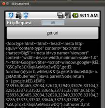 我们有一个apk,名字叫做HttpRequest.apk,它的界面包括一个按钮和一个文本框,当我们单击按钮的时候,程序会去访问一个固定的网页,并将页面的代码显示在文本框中,而这个网页的URL我们是不知道的,如下图所示,