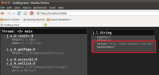 现在我们的任务是要找出这个URL是什么(当然,对于这个简单的例子,我们通过抓包或者静态反编译都能解决这个问题)。