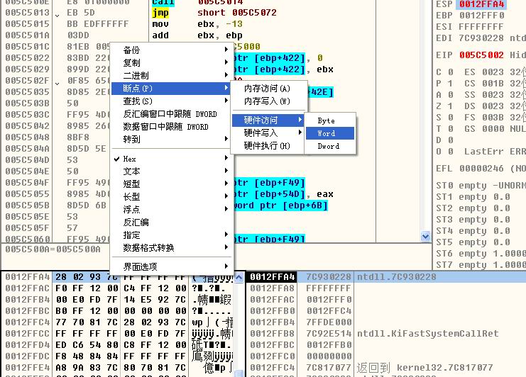 对于Dr6,Dr7这两个寄存器的作用是用来记录你在Dr0-Dr3中下断的地址的属性,比如:对这个401000是硬件读还是写,或者是执行;是对字节还是对字,或者是双字。