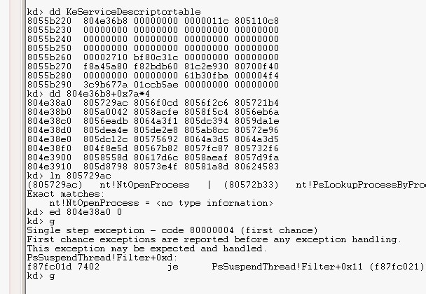 很闪亮的NtOpenProcess的当前地址变为零了。可是系统跑的很正常。哈哈。