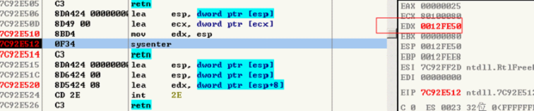 bp KiFastCallEntry".if @edx== 0x0012FE50{} .else{gc}" 用符号不知道为什么容易 假死机