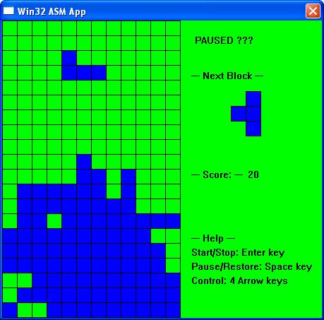 - 标 题:Win32汇编实现的一个完整的俄罗斯方块游戏